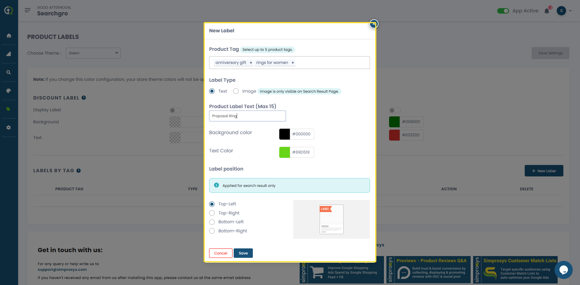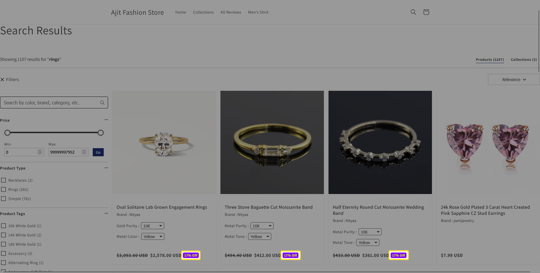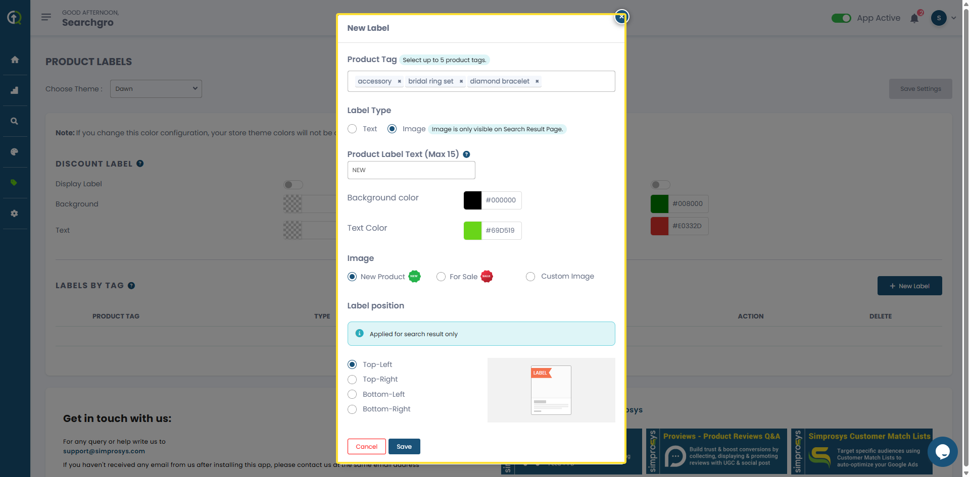 Product labels in the SearchGro help highlight discounts, stock status, or new arrivals directly on your product listings. This helps shoppers quickly spot important details, boosting engagement and conversions.