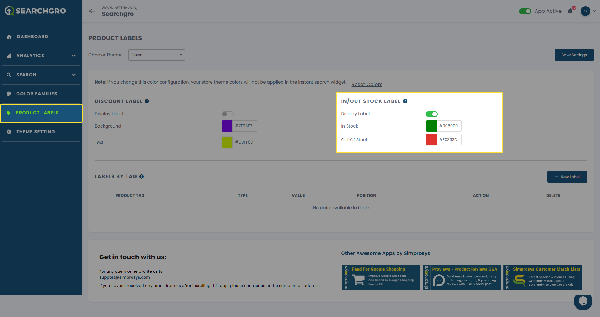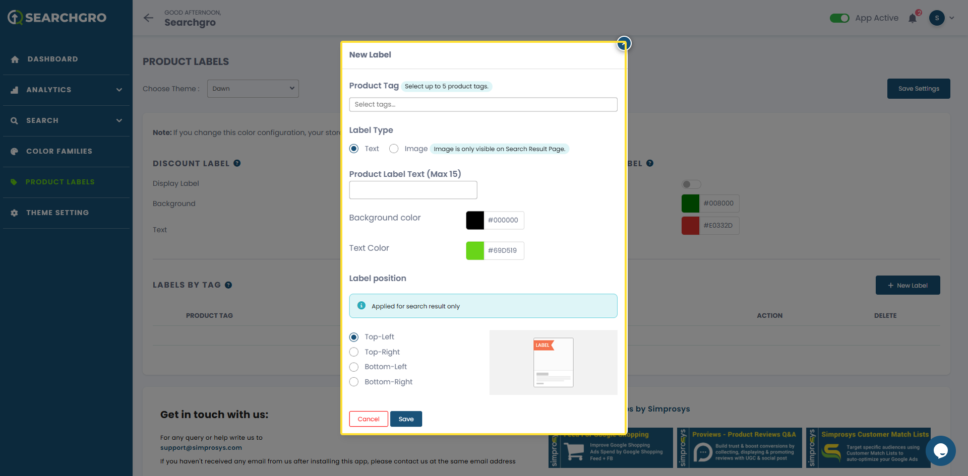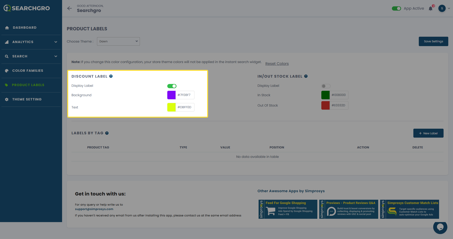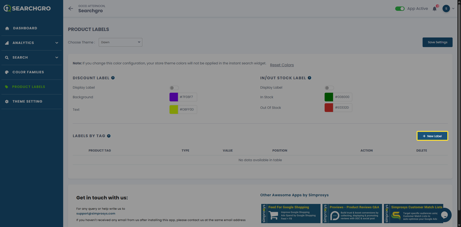This guide explains how to assign, customize, and manage product labels in SearchGro.