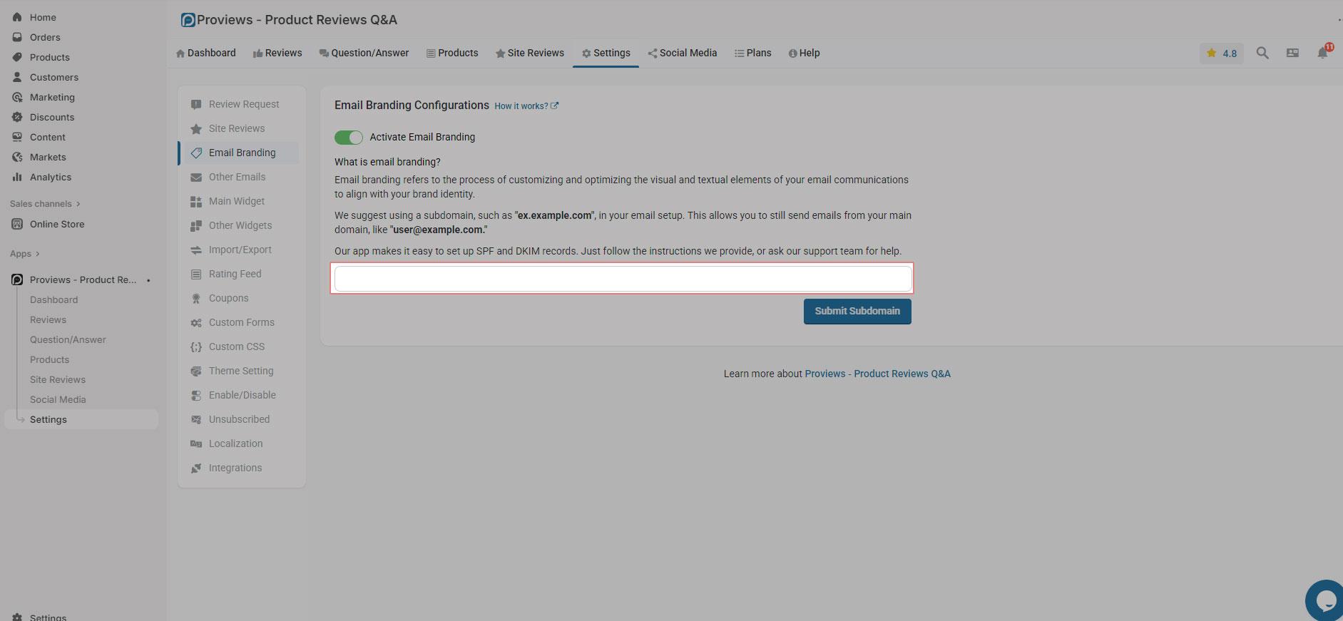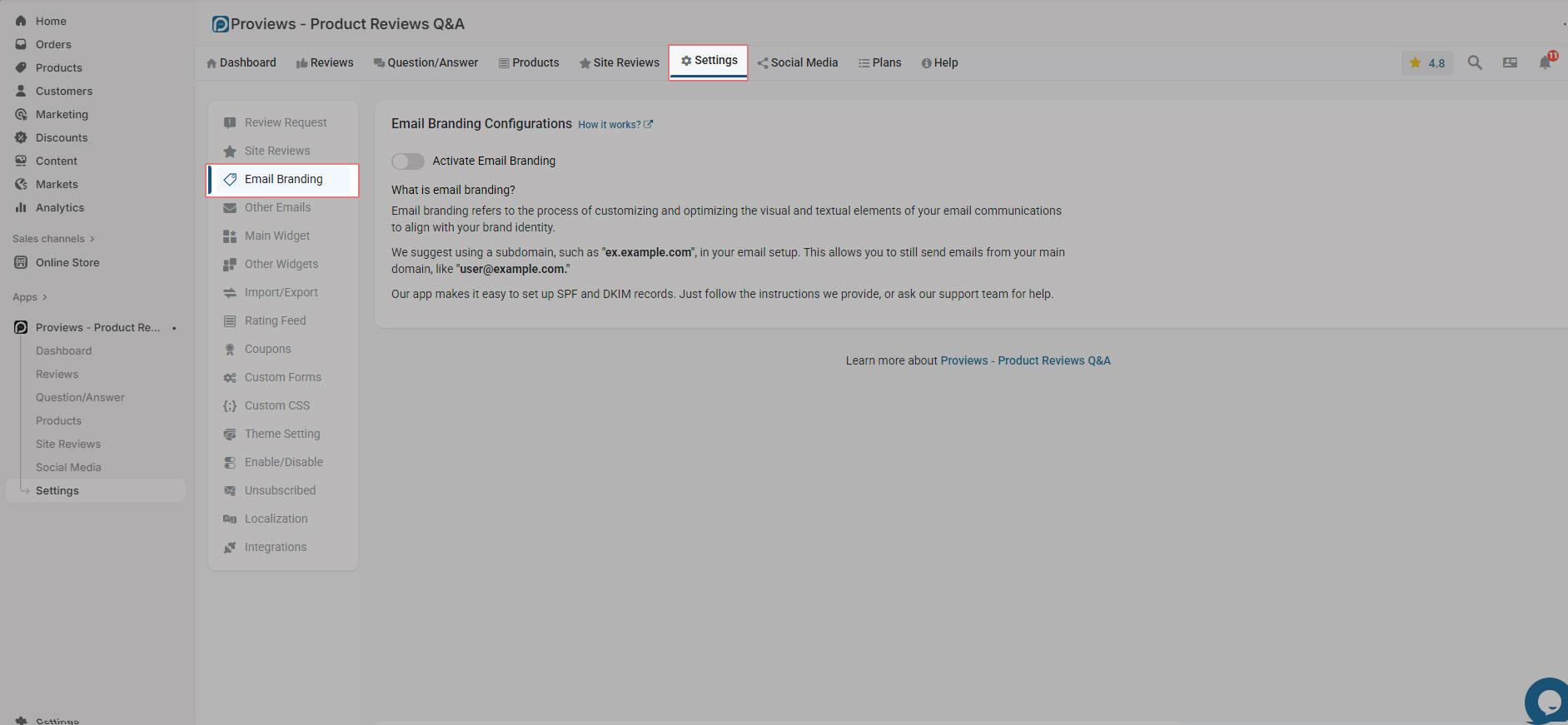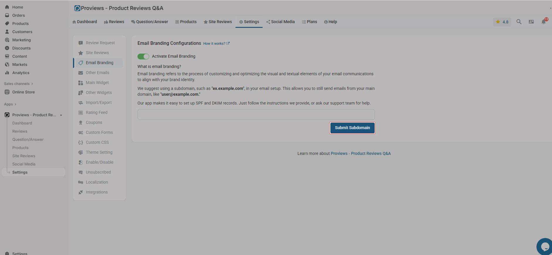 Email Branding Configuration in Proviews – Product Reviews Q&A