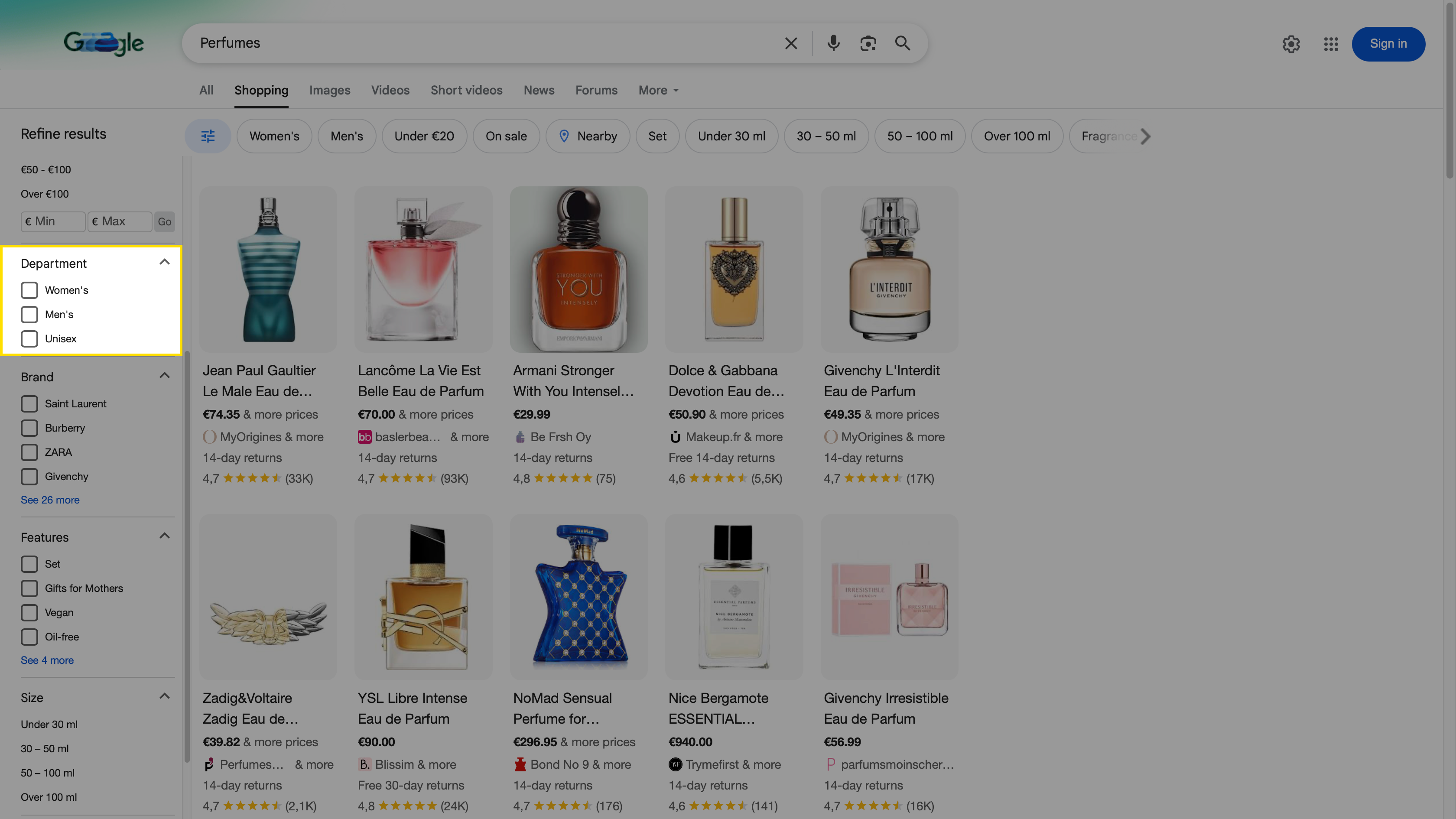 - Similarly, apply the filter “men” to identify all those products to which only the gender “Male” can be assigned.