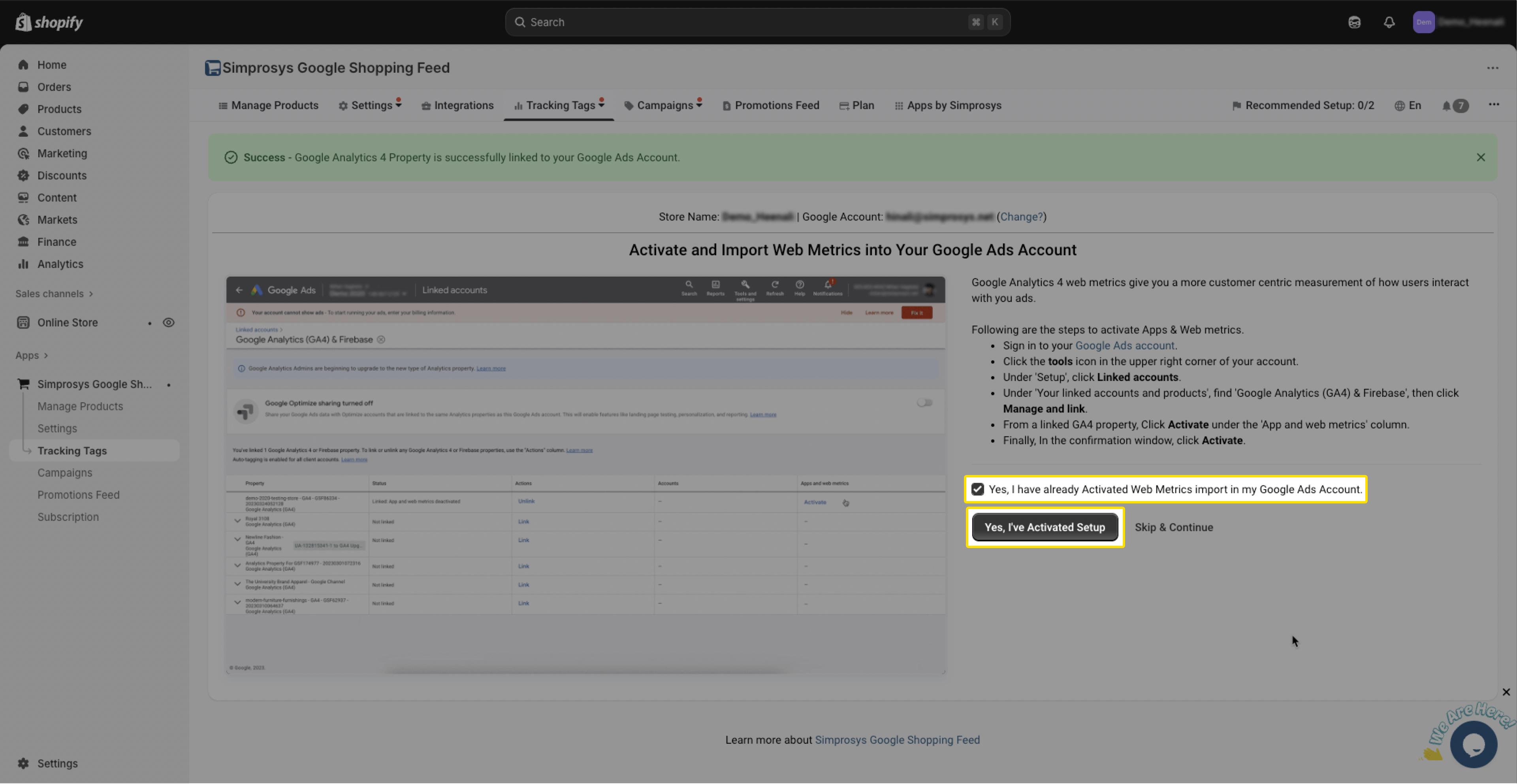 6. Further, you will get the option to import the web metrics to your Google Ads account by following the steps mentioned on the page. You can either proceed with it or you may skip this process. Please note that this process needs to be done manually in your Google Ads account.