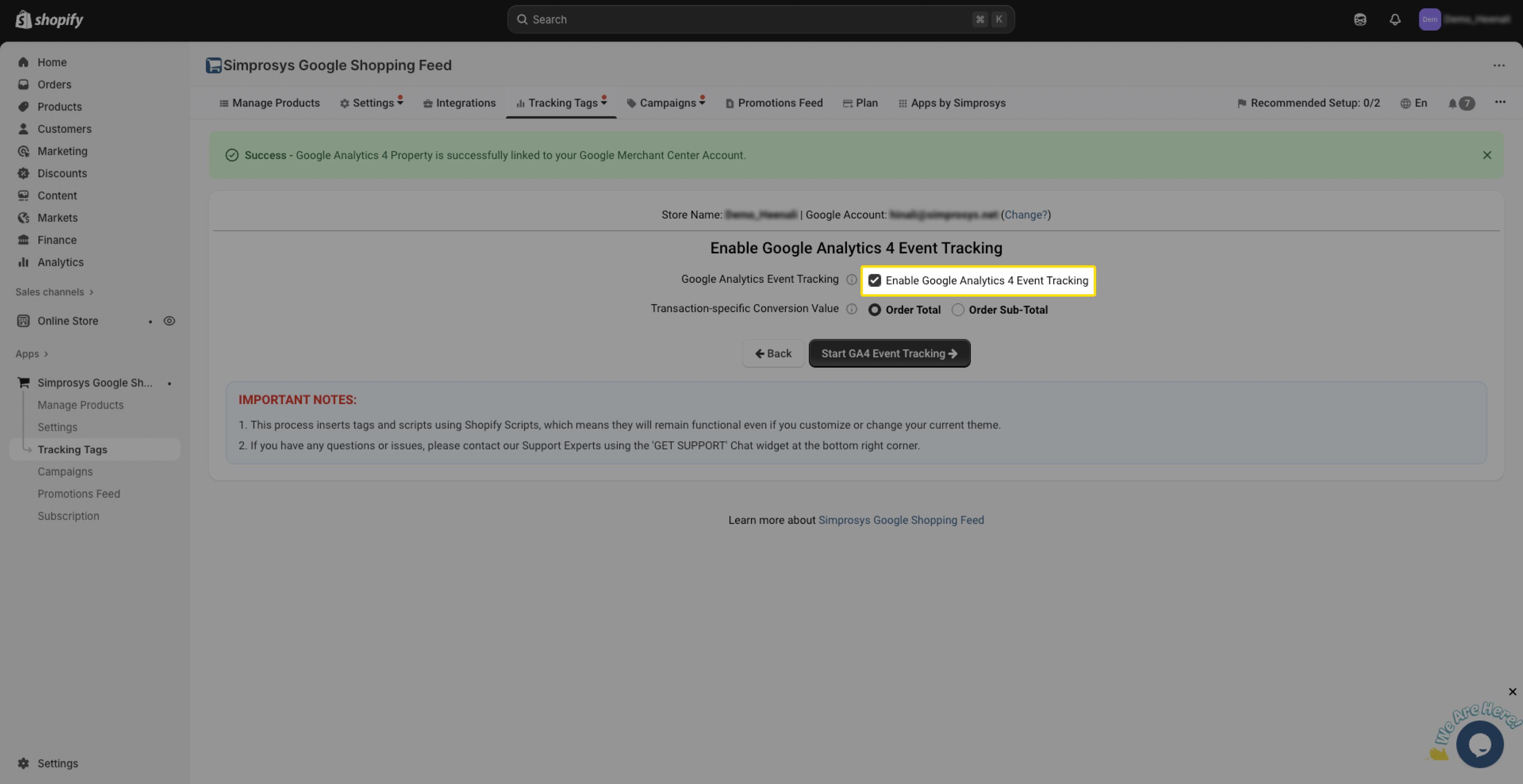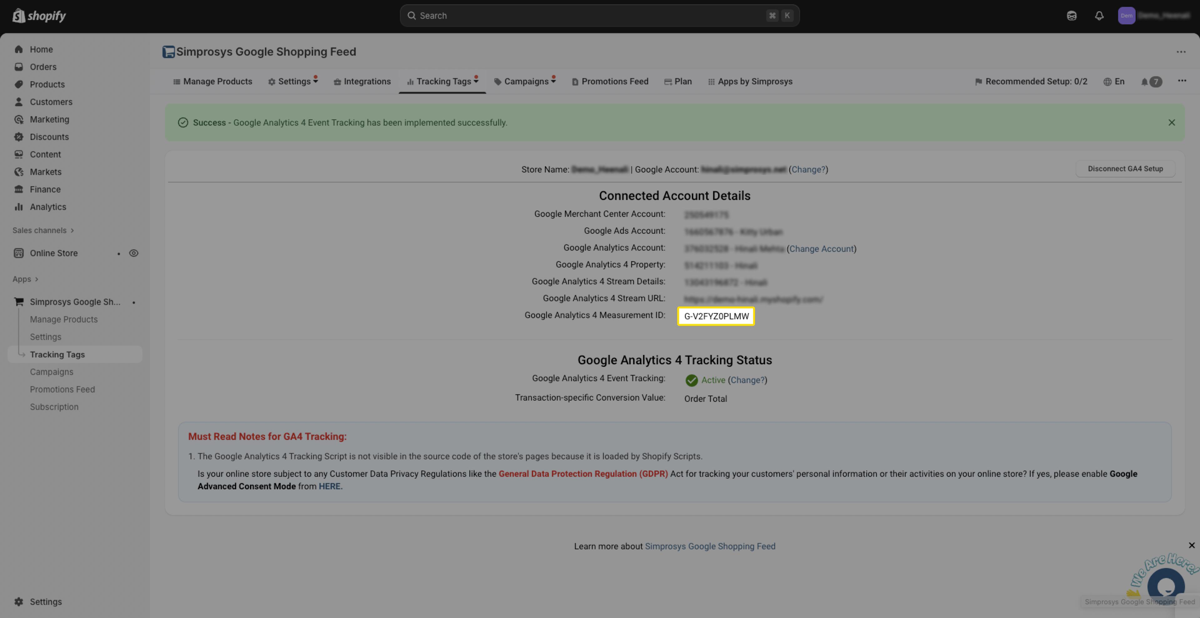 How to implement Google Analytics 4 (GA4) tracking from the Simprosys Google Shopping Feed app?