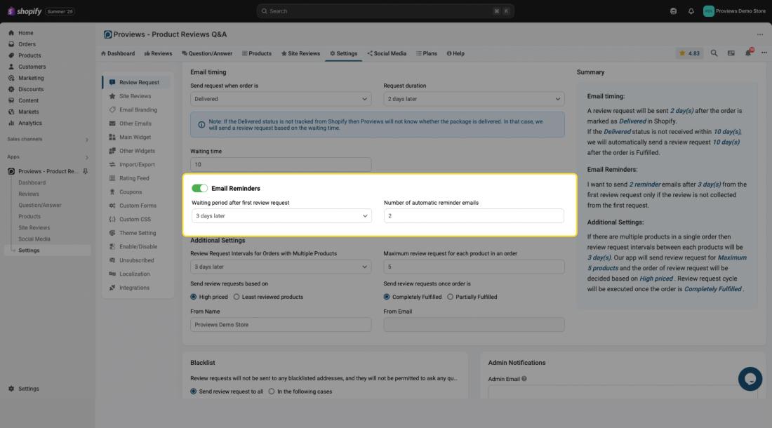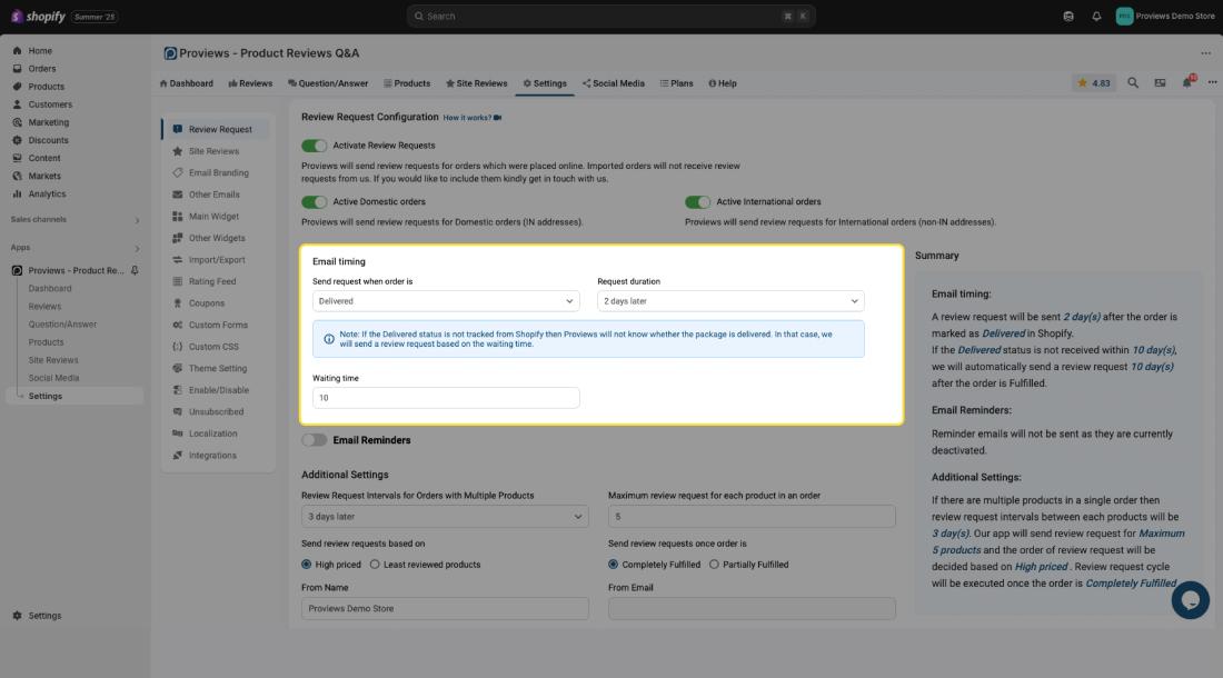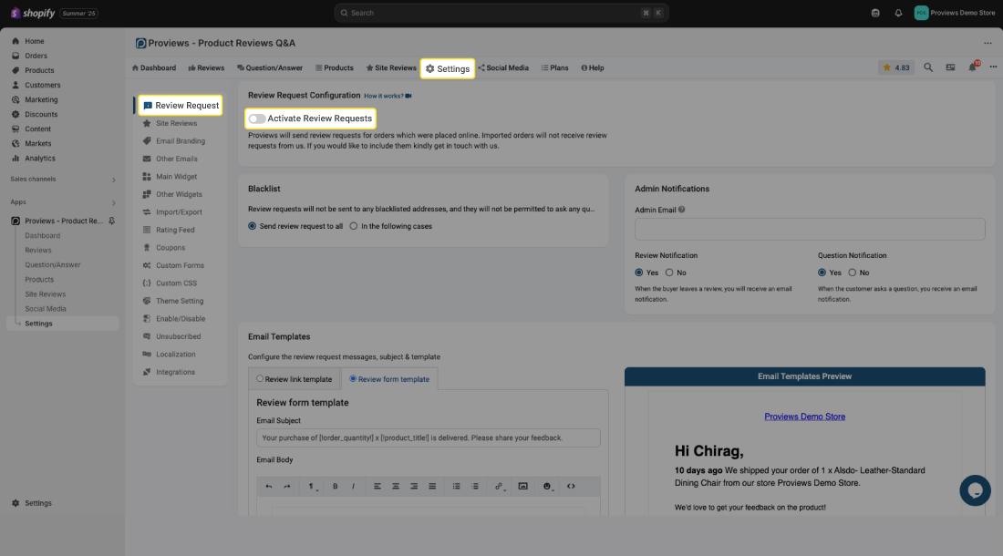 This document will guide you through configuring review requests in Proviews, a Product Reviews Q&A app. Properly configuring these settings will allow Proviews to automatically send review requests to your customers, increasing your chances of gathering valuable feedback.