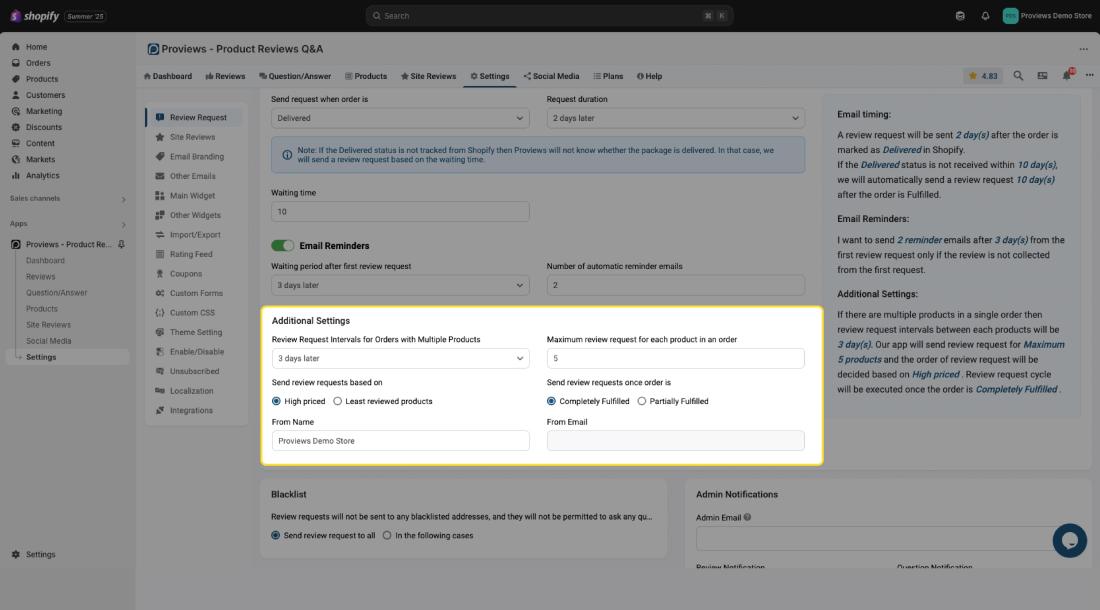 By carefully configuring these settings, you can optimize Proviews to effectively gather product reviews and Q&A, improving your store's credibility and customer engagement.