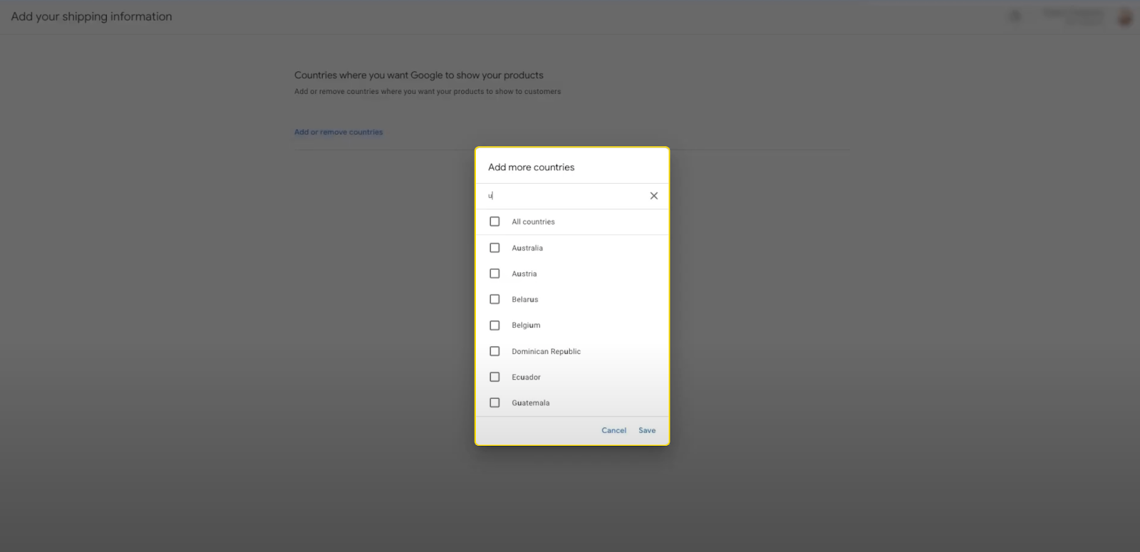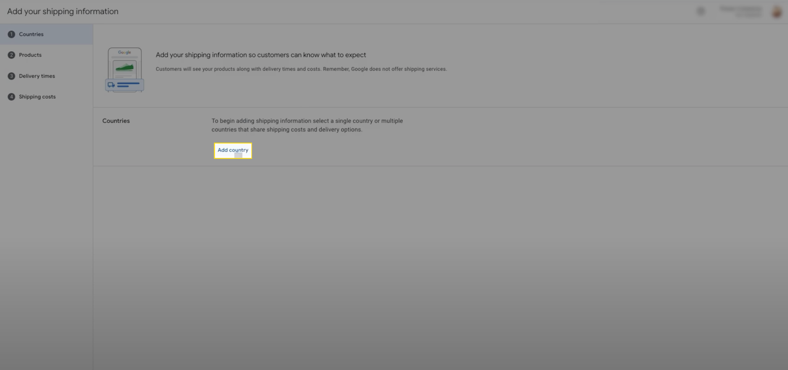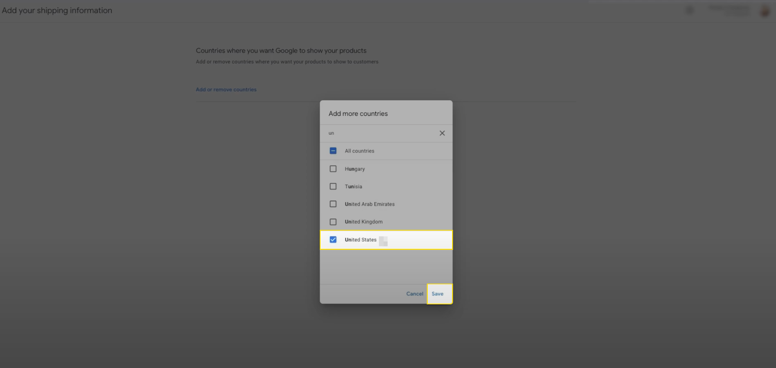 - Step 1: Go to your merchant center account and click on Add shipping information, then click Add country. Add “United Kingdom” as an additional country and save the settings.