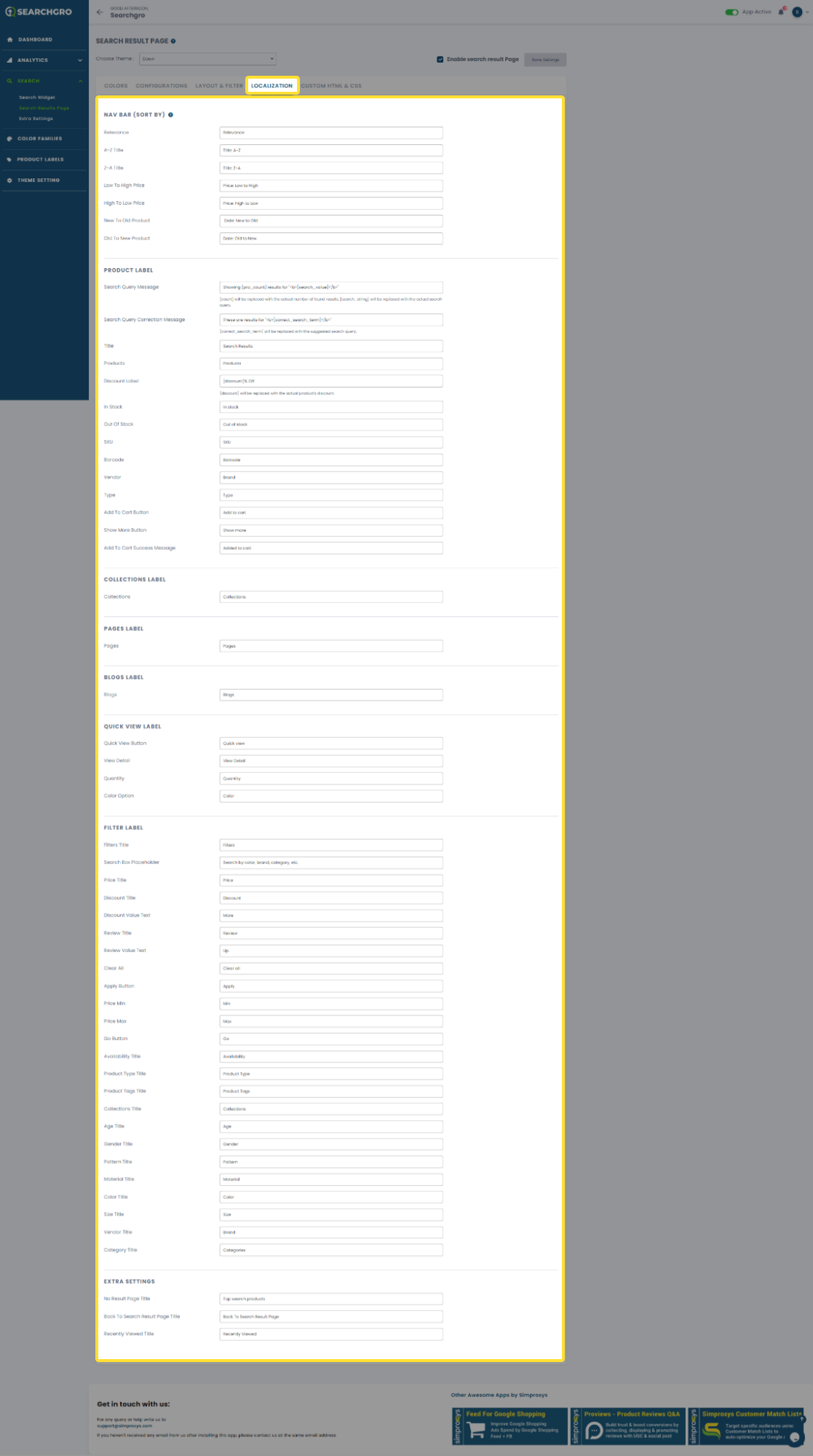 How to Localize (Translate) Labels for the Search Results Page in SearchGro