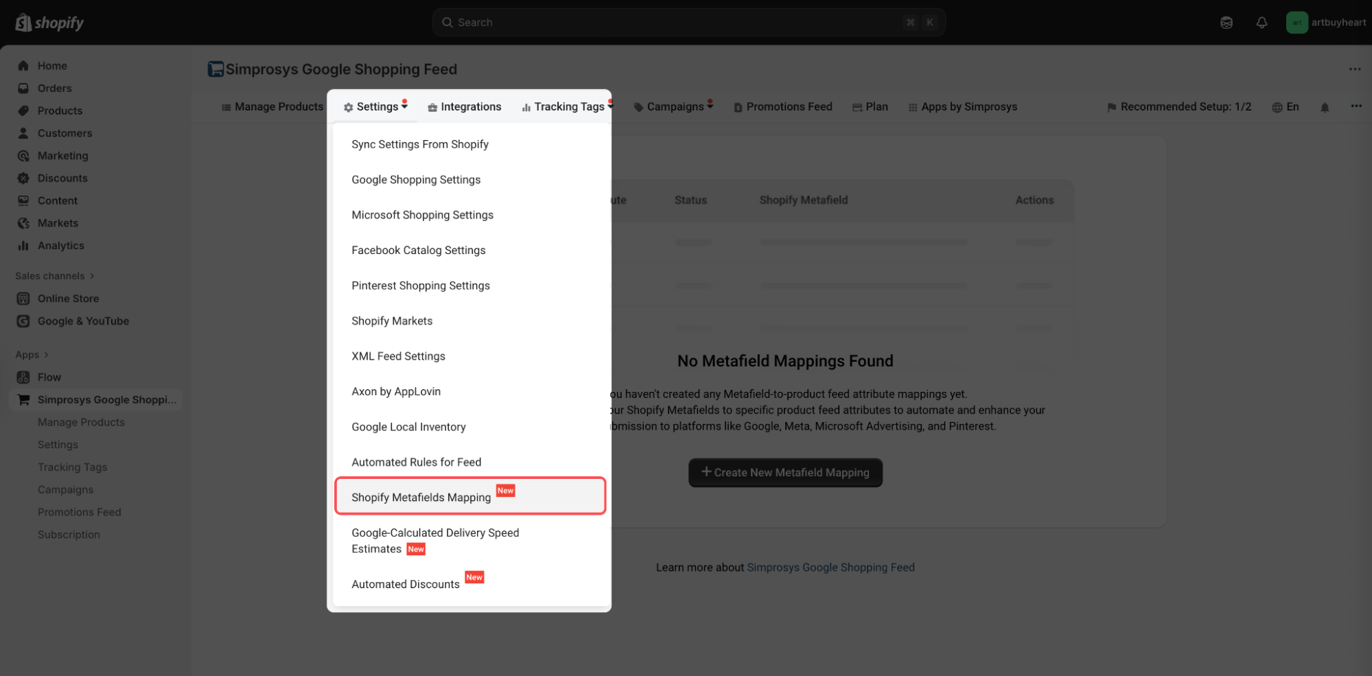 Mapping Metafields in Simprosys Google Shopping Feed App