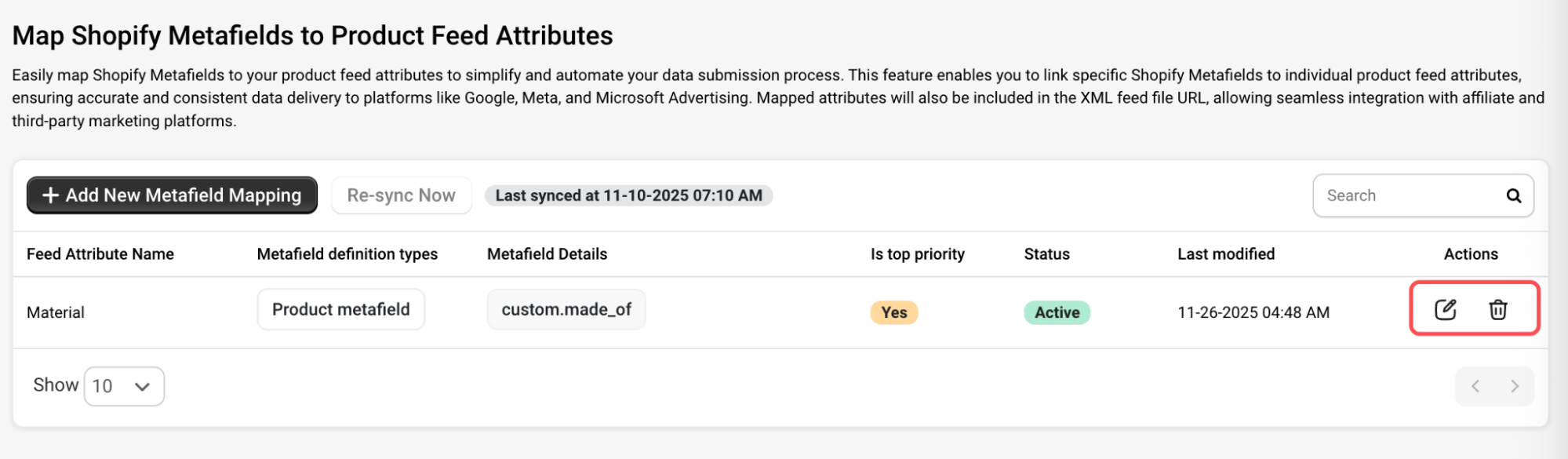 You can return to the Shopify Metafields Mapping interface anytime to edit or delete mapped metafields.