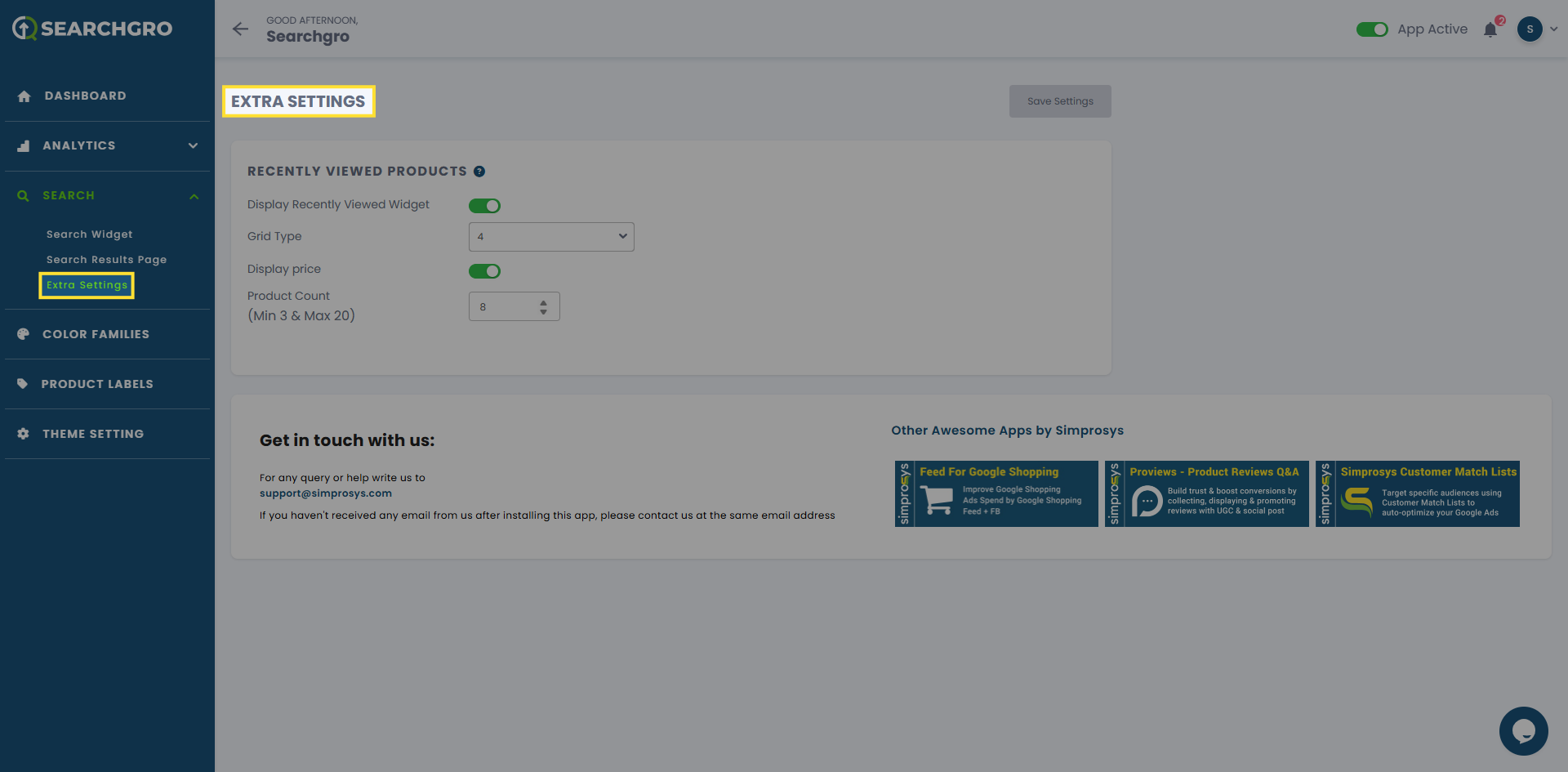 Extra Settings: In this section, you can view our upcoming features. Currently, you will see the recently viewed products widget.