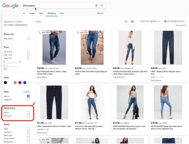 - Similarly, apply the filter “men” to identify all those products to which only the gender “Male” can be assigned.